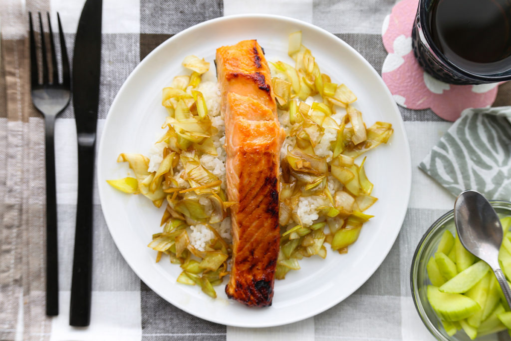 The chopped leeks simmer alongside the salmon and pick up the nuanced flavors of both the fish and sauce. Trust us… you’ll be spooning the leeks on top of your rice with abandon!